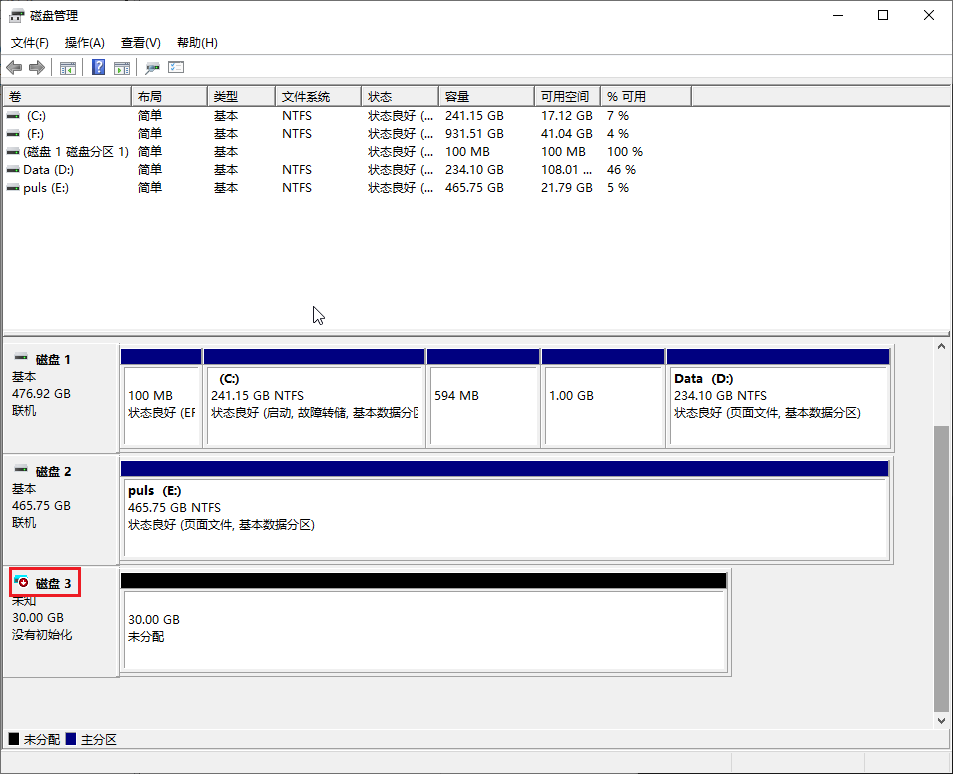 打开Windows的磁盘管理界面,在操作工具栏中选择创建VHD,之后指定VHD文件存放的位置和虚拟磁盘大小,此处我填入了30GB,之后非常重要的一步是将虚拟硬盘类型改为固定大小,因为截至撰写本文之前ventoy尚未支持动态扩展的磁盘类型。创建好了之后会提示你初始化磁盘,有两种模式:MBR,GPT,我选择了GPT模式。之后非常重要的一步是确认磁盘号,我这里是磁盘3,之后创建虚拟机的时候就是physicalDrive3.