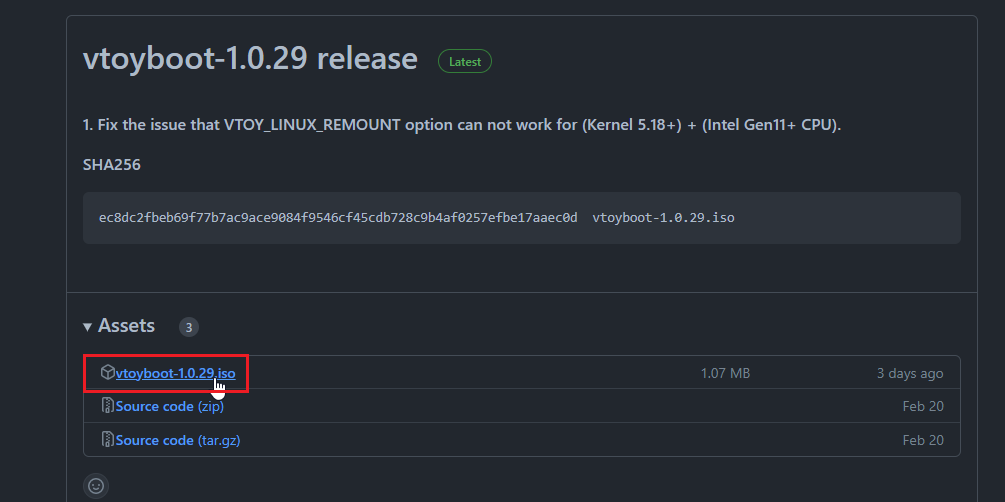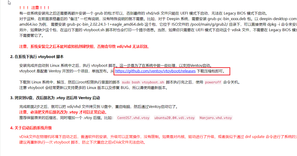 注意 vtoyboot 会经常更新以支持更多的 Linux 版本以及修复 BUG,所以请使用最新版本。